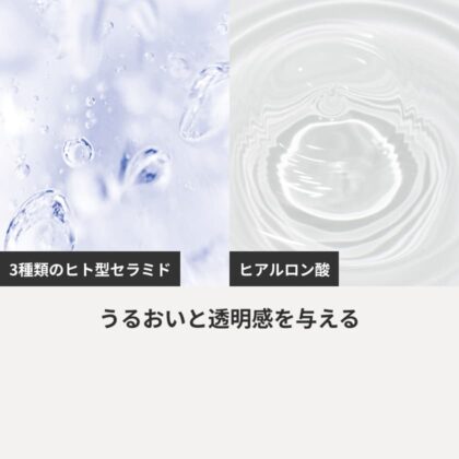 うるおいとハリを与える国産の和漢植物エキス・高保湿のヒアルロン酸・3種類のヒト型セラミドを配合。水分を肌にしっかりと閉じ込め、眠っている間に保湿し、翌朝の素肌に透明感を与えます